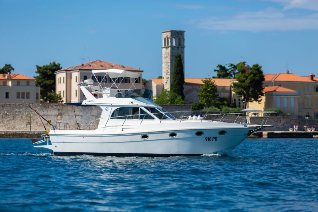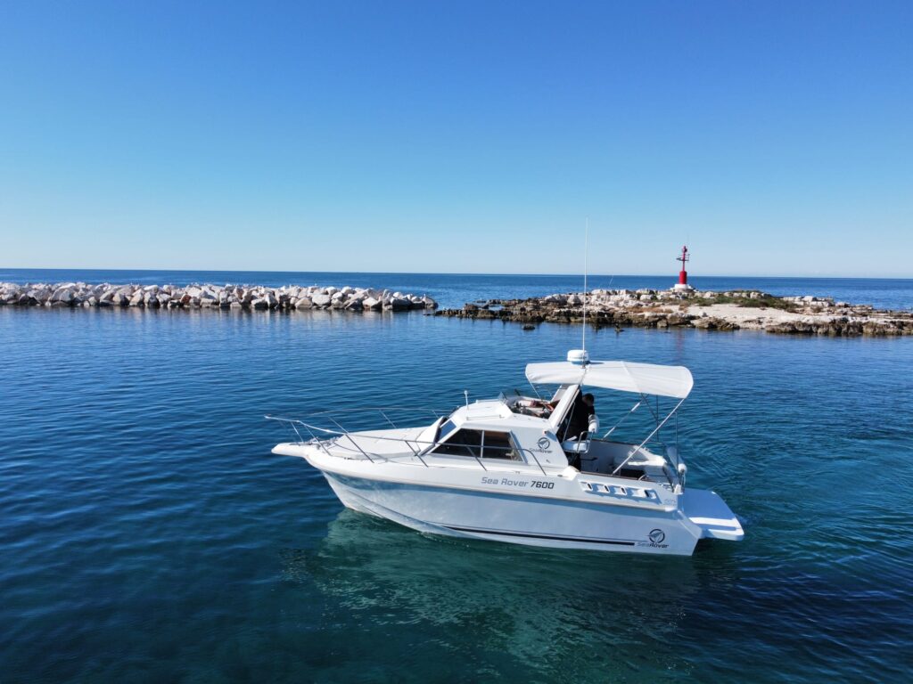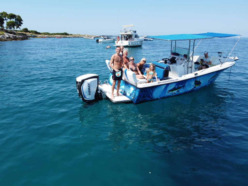 11m long boat for daily family trips. The Boat is also equipped for Big Game fishing trips on tuna and other large fish and sport fishing in the North Adriatic Sea. We also organize various other excursions as well as sightseeing of the dolphins in Poreč. Tuna Tail can receive 16 passengers + 2 crew members and achieve a speed of 30 NMh (19NMh – cruising speed).